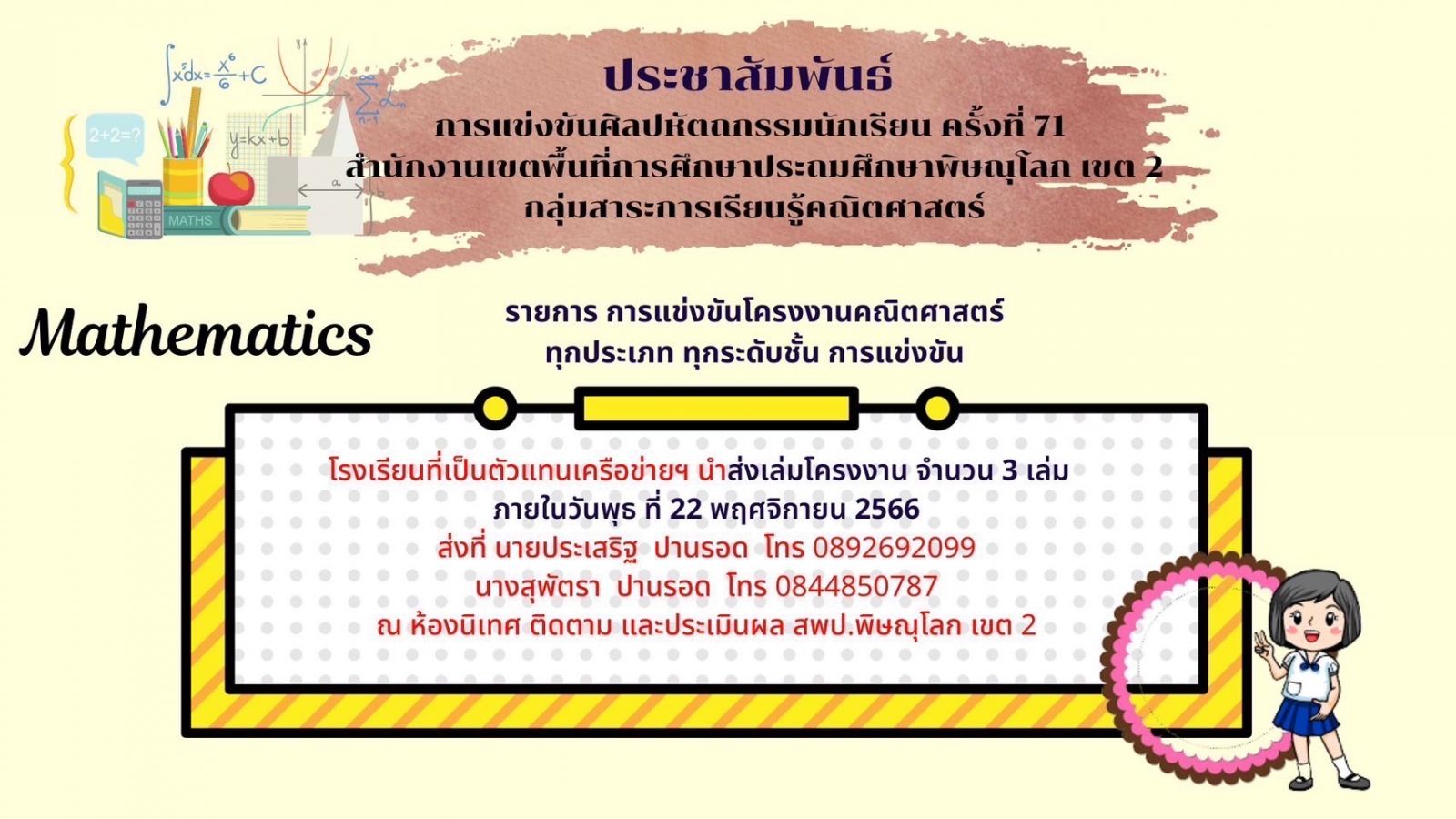 ประชาสัมพันธ์ การแข่งขันโครงงานคณิตศาสตร์ ทุกประเภค ทุกระดับชั้น การแข่งขัน