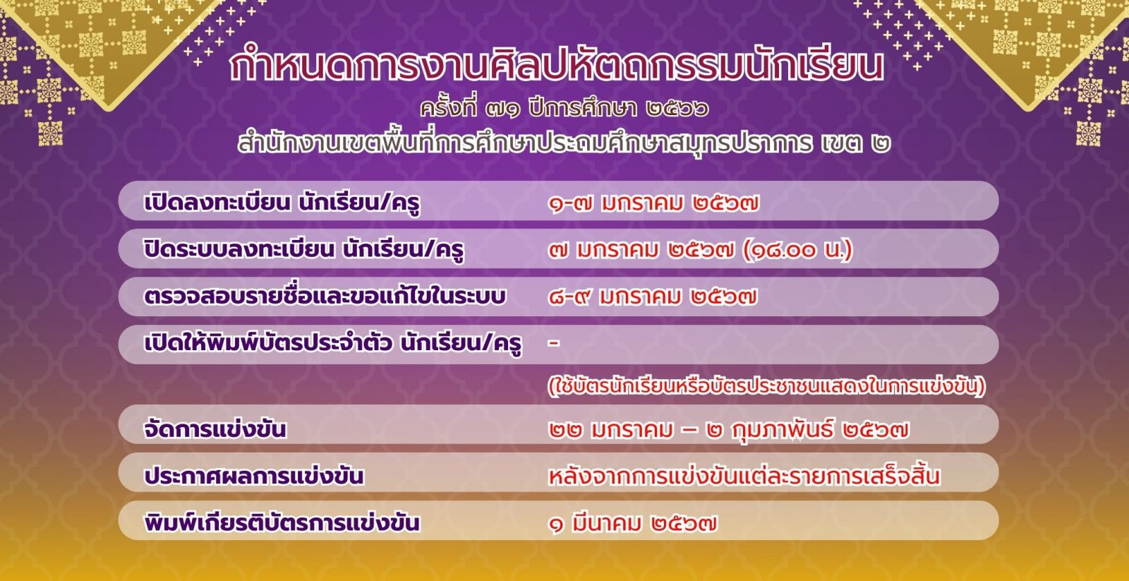 งานศิลปหัตถกรรมนักเรียนระดับเขตพื้นที่การศึกษา ครั้งที่ 71 ปีการศึกษา 2566 สำนักงานเขตพื้นที่การศึกษาประถมศึกษาสมุทรปราการ เขต 2